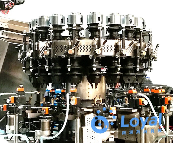 該機型采用立轉臥設計,使得直徑較大的玻璃瓶在制底過程中能夠得到均勻的底厚,提高了產品的質量。玻璃瓶制瓶機,A部夾頭位采用雙夾頭設計,模具三套能很好的提高瓶口的質量。